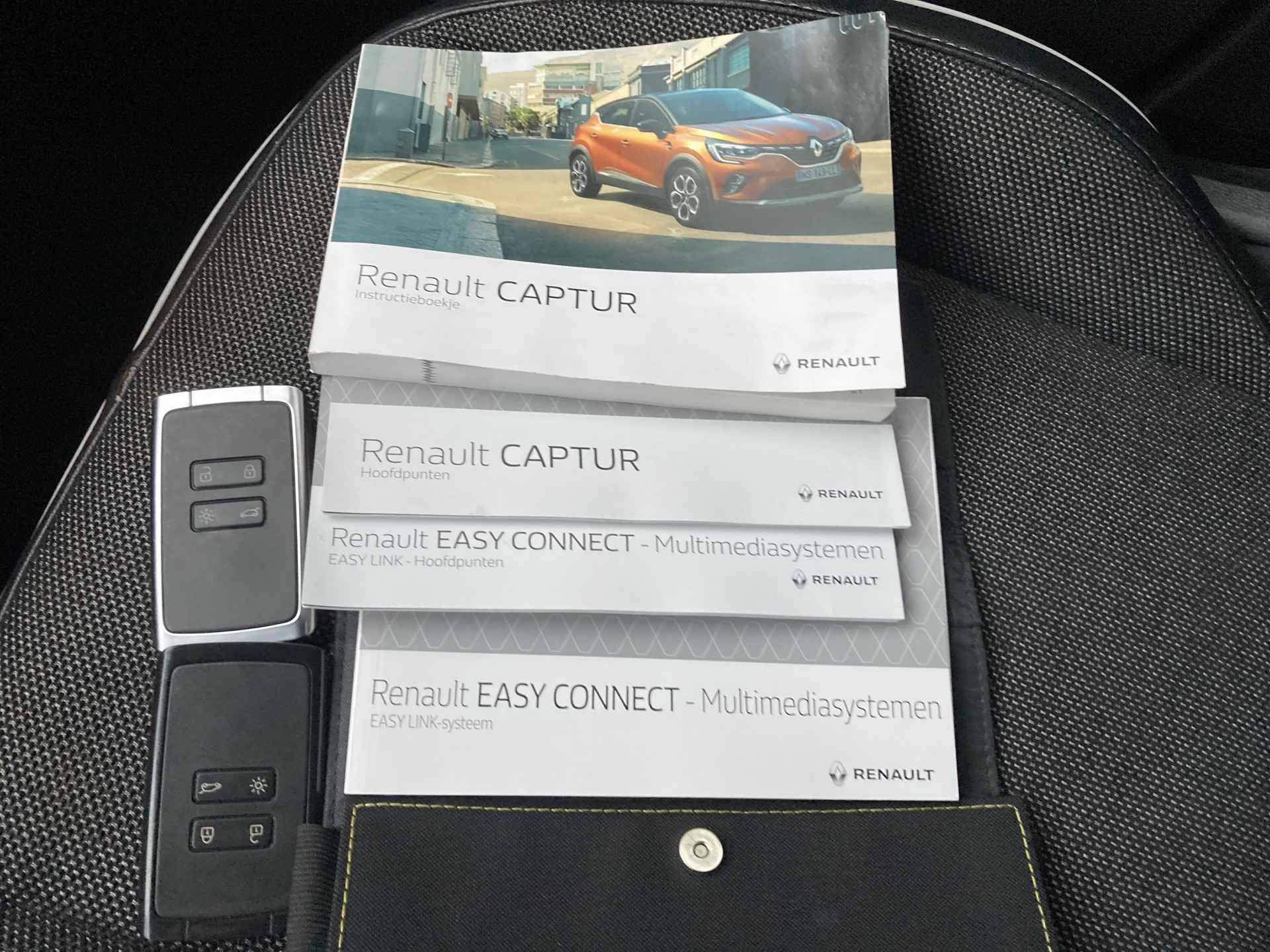 Zoals u mag verwachten van deze Renault Captur is hij uitgerust met een reeks aan actieve veiligheidssystemen. Belangrijk voor uw veiligheid en die van uw passagiers is de verkeersbord-detectie in deze auto. Deze Renault Captur is ook behulpzaam als het gaat om een rechte koers. Het Lane-keeping systeem signaleert en corrigeert als u onbedoeld de rijstrooklijnen dreigt te overschrijden. De forward collision warning reduceert het gevaar van een botsing met een voorligger significant. De veiligheid van deze auto wordt verder verhoogd door hill hold functie, brake assist en bandenspanningcontrolesysteem.