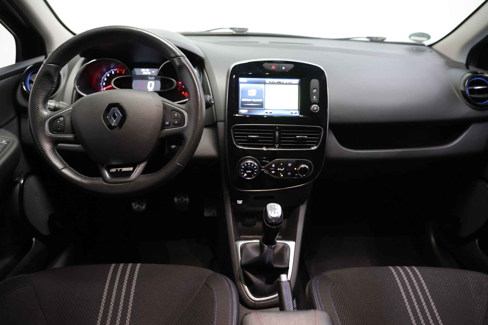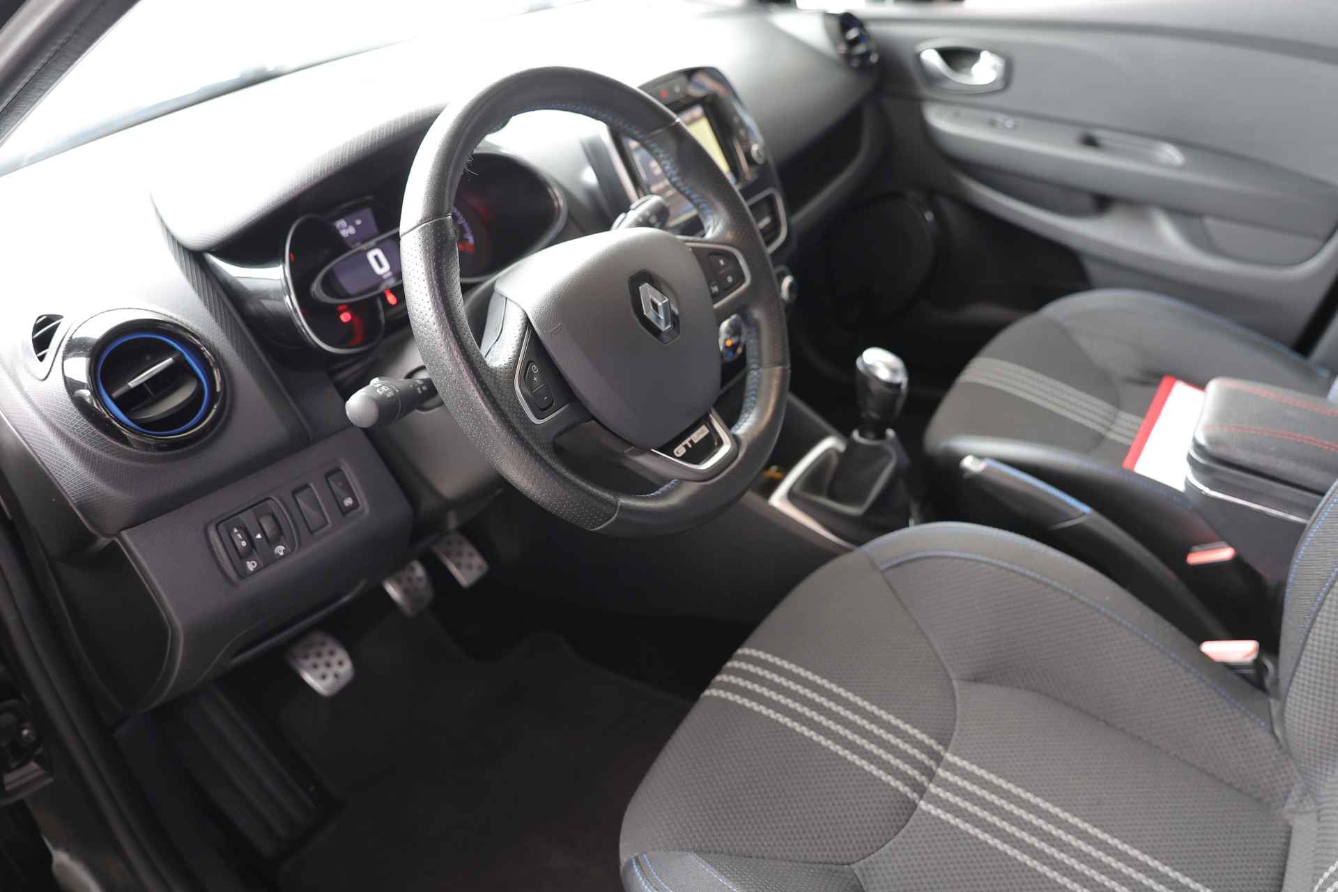 Van buiten zie je meteen dat dit geen gewone Clio is: de GT-bumpers, dubbele uitlaat, LED dagrijverlichting en sportieve velgen geven hem een krachtige en onderscheidende uitstraling maakt het plaatje compleet.
