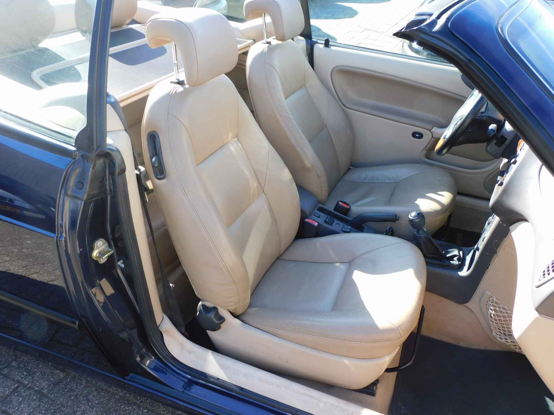 Mooie uitvoering buitenzijde blauw met beige interieur.