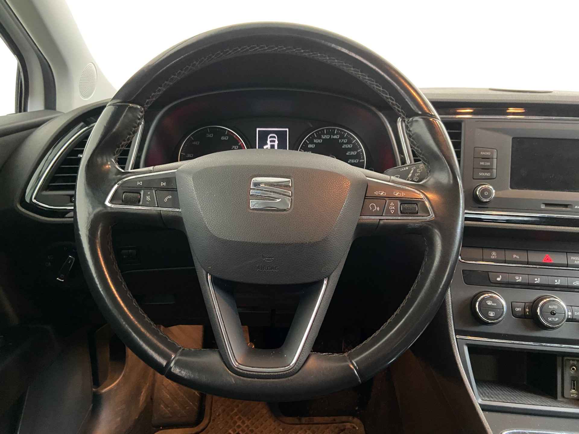 Automatische airconditioning verwarmt of koelt het interieur met een druk op de knop. Door de audiobediening op het stuur regelt u elke aanpassing van het geluid en de muziek zonder het stuur los te laten. De cruise control levert een mooie, gelijkmatige koers. Dat rijdt prettig. De SEAT is standaard voorzien van: centrale deurvergrendeling met afstandsbediening, boordcomputer en lederen versnellingspook.