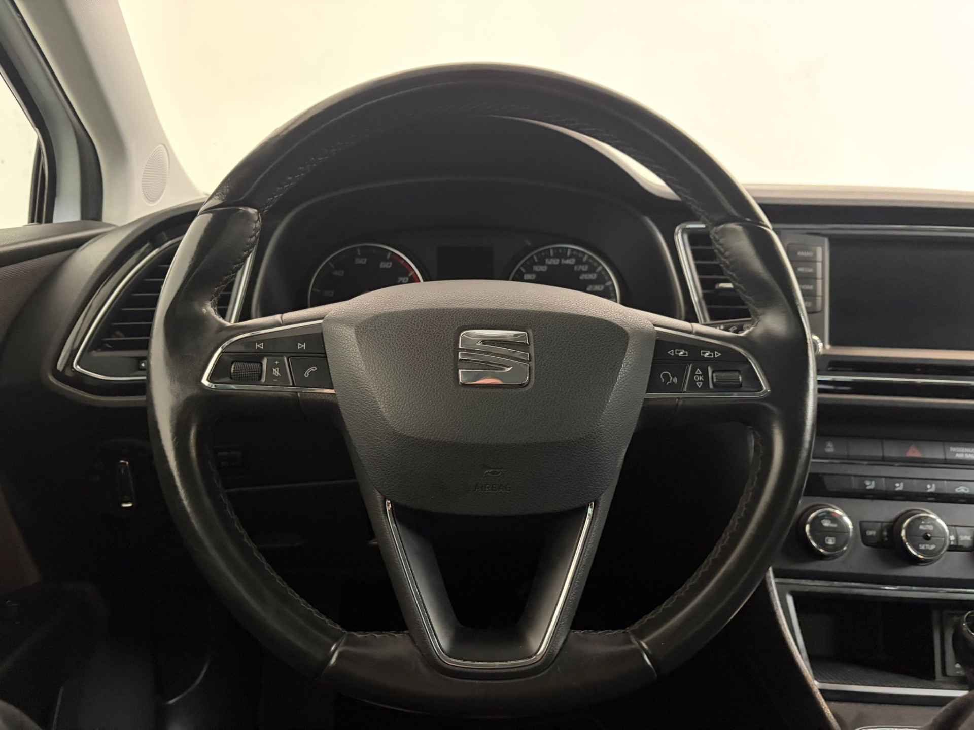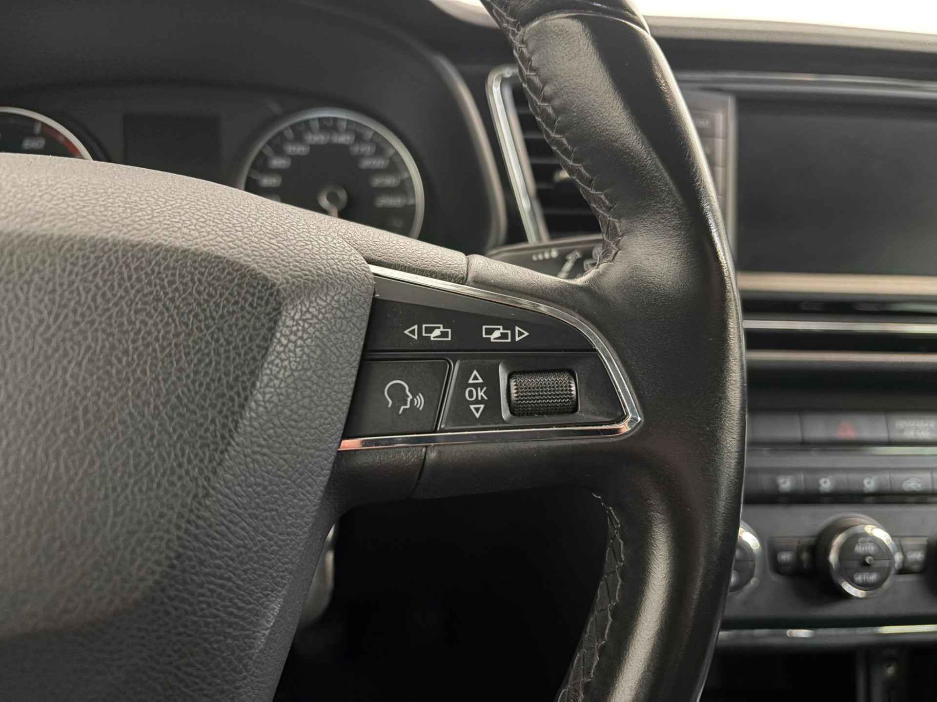 Locatie, motorconditie, storingen... via Connected Services krijgt u alle vitale info over de auto door. Ook handig bij pech! Prettig, altijd weten waar je moet zijn en hoe lang de rit nog duurt met het navigatiesysteem. Automatische airconditioning verwarmt of koelt het interieur met een druk op de knop. Niet meer op de tast een andere zender zoeken of het volume aanpassen. En al helemaal niet met uw ogen van de weg af raken. De audiobediening op het stuur zorgt dat u alles van onder uw vingers regelt. De aanwezige parkeersensoren zijn de ultieme hulp om te laten weten hoeveel ruimte er nog is om te manoeuvreren. U bent in deze SEAT ook voorzien van regensensor, cruise control, automatisch dimmende binnenspiegel, lederen stuur, centrale deurvergrendeling met afstandsbediening en boordcomputer.