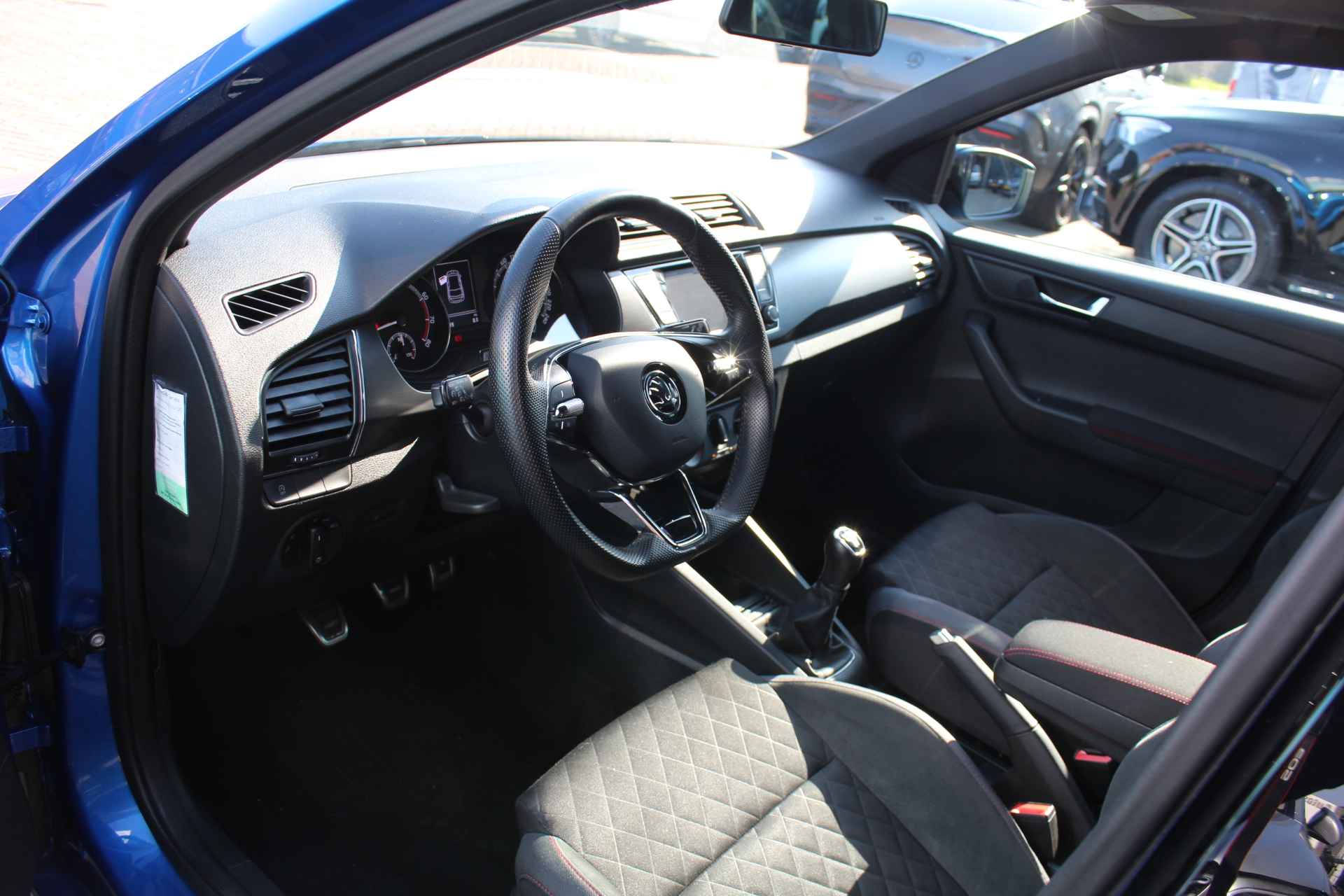 U bedient het audio-installatiesysteem met dab-radio via knoppen op het stuur. Zo kunt u steeds uw aandacht gericht houden op de weg. Parkeersensoren zijn een waardevolle toevoeging aan deze auto. De sensoren waarschuwen tijdens het parkeren en voorkomen schade aan de auto. Cruise control verlaagt de brandstofkosten en verhoogt het rijcomfort. U vindt in deze auto ook airconditioning. De ŠKODA is standaard voorzien van: sportstuurwiel, centrale deurvergrendeling met afstandsbediening, boordcomputer en lederen versnellingspook.