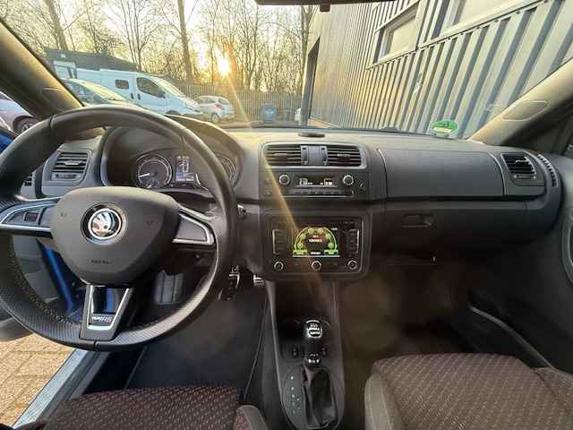 De ŠKODA Fabia heeft een krachtig design, hij toont zelfverzekerd maar niet arrogant. Het is die uitstraling die deze auto zo aantrekkelijk maakt. Zijn rijkwaliteiten zijn navenant: achter het stuur van deze auto bent u iedere verkeerssituatie de baas, dankzij zijn krachtige motor en uitgekiende wegligging. De krachtige benzinemotor van deze auto is gekoppeld aan een automatische transmissie. Scherpe bochten, pittige acceleraties? In de sportstoelen blijft u altijd in positie. Bij de zeer complete uitrusting van deze auto behoren ook 17 inch lichtmetalen velgen, sportonderstel, LED-dagrijverlichting, dakspoiler, donker getint glas achter en in delen neerklapbare achterbank.