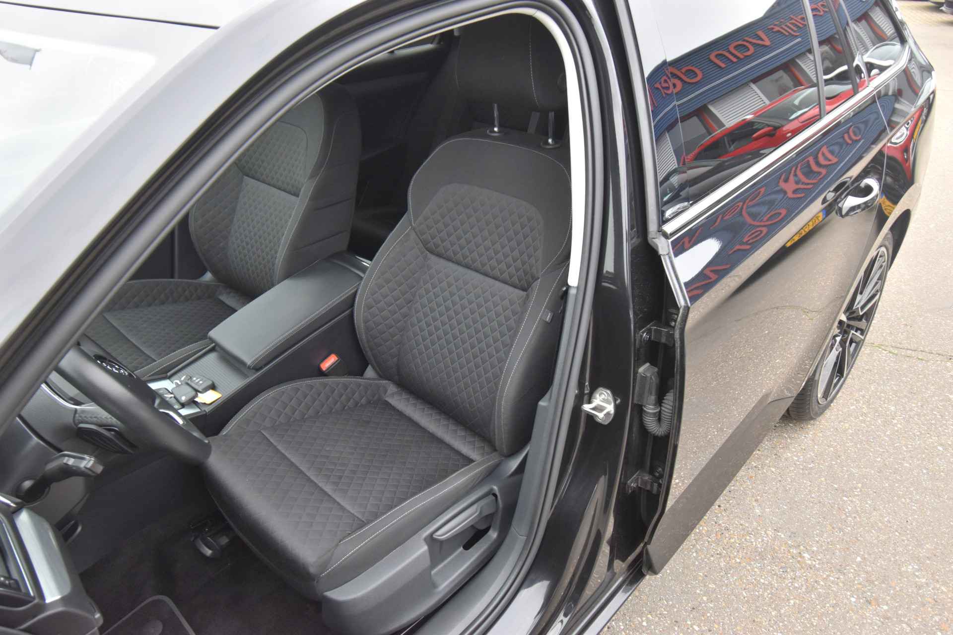 Altijd de benodigde functies in beeld? Het digitale dashboard zorgt ervoor. Waar u zelf ook bent, u staat altijd in contact met de auto via de app op uw smartphone. Zo controleert u uiteenlopende functies, ook op afstand. U kunt tijdens de rit uw ogen steeds op de weg houden, want het audio-installatiesysteem (met DAB!) en het full map navigatiesysteem kunt u bedienen vanaf het stuur of met spraak. De draadloze oplaadmogelijkheid voor telefoons voldoet aan de universele Qi-standaard. Elke geschikte smartphone is onderweg zonder snoeren en stekkers op te laden. De kans op een kop-staart botsing wordt sterk gereduceerd door het systeem van achteropkomend verkeer waarschuwing. Wat u ook in deze auto kunt vinden zijn WIFI-hotspot, automatische airconditioning, sportstuur met schakelpaddels, parkeersensoren achter, regensensor en cruise control.