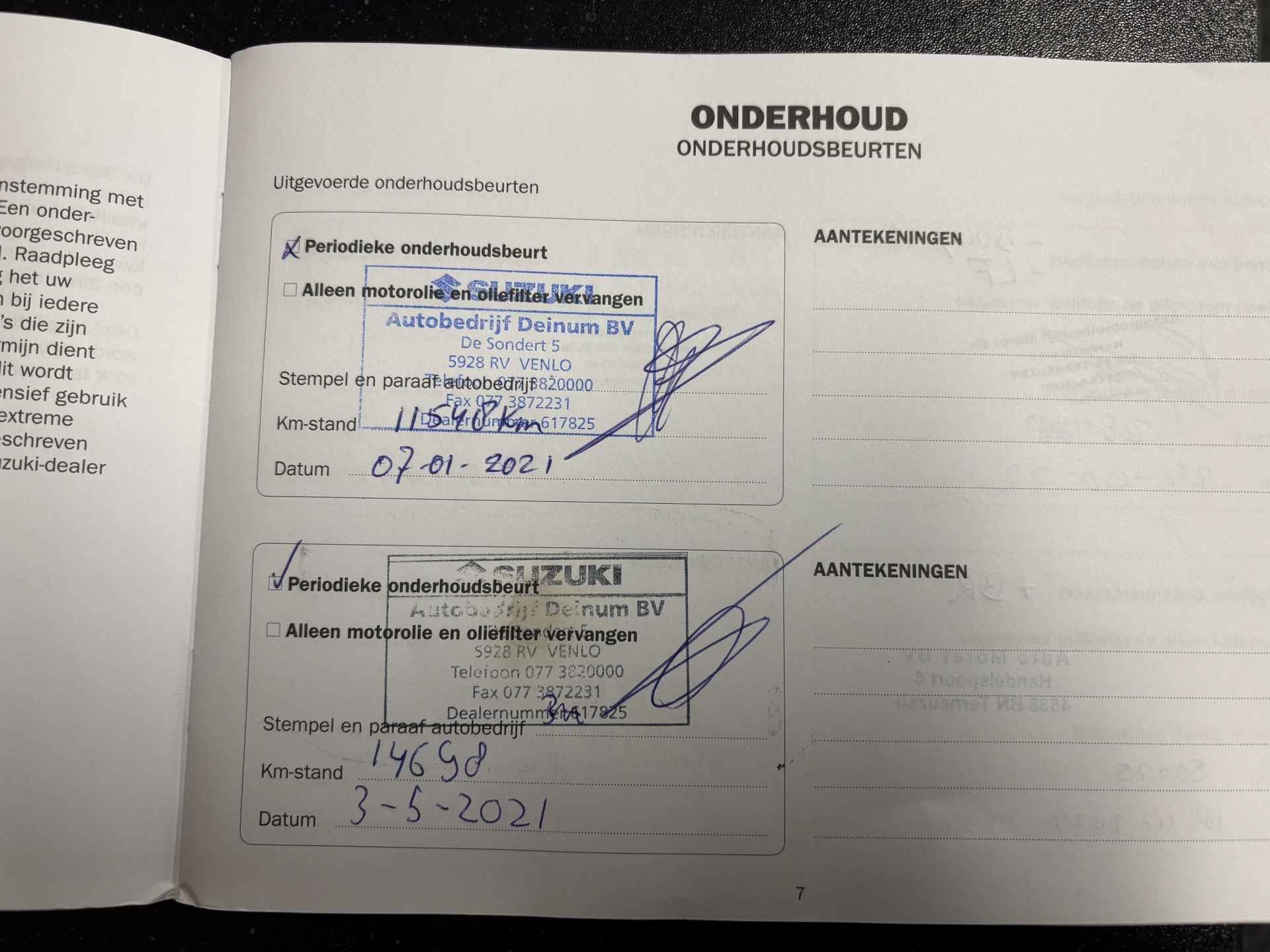 Garantie tot 3-1-2030, mits jaarlijks onderhoud volgens fabrieksvoorschrift bij een Suzuki-dealer, kijk voor de voorwaarden op suzuki.nl