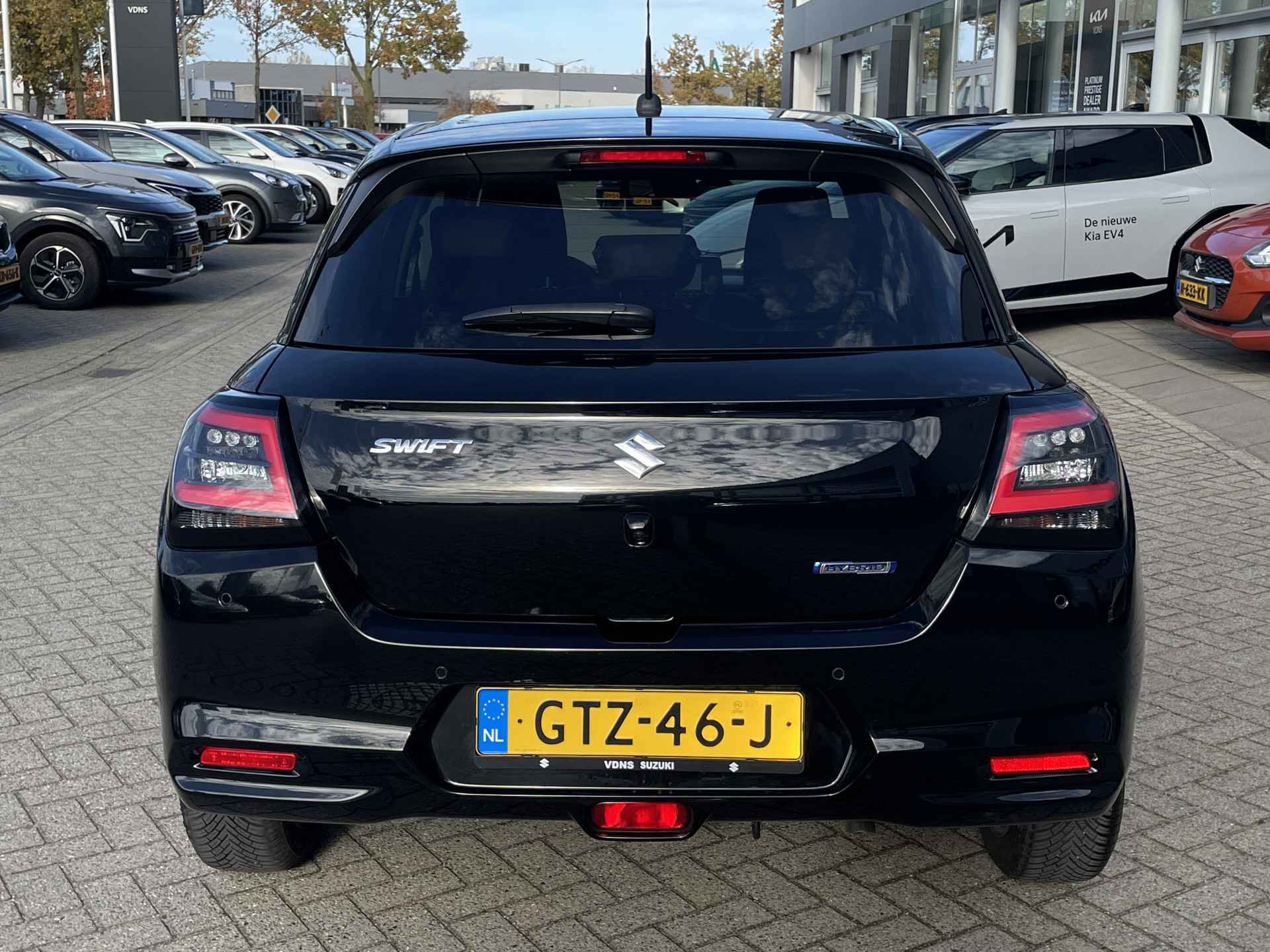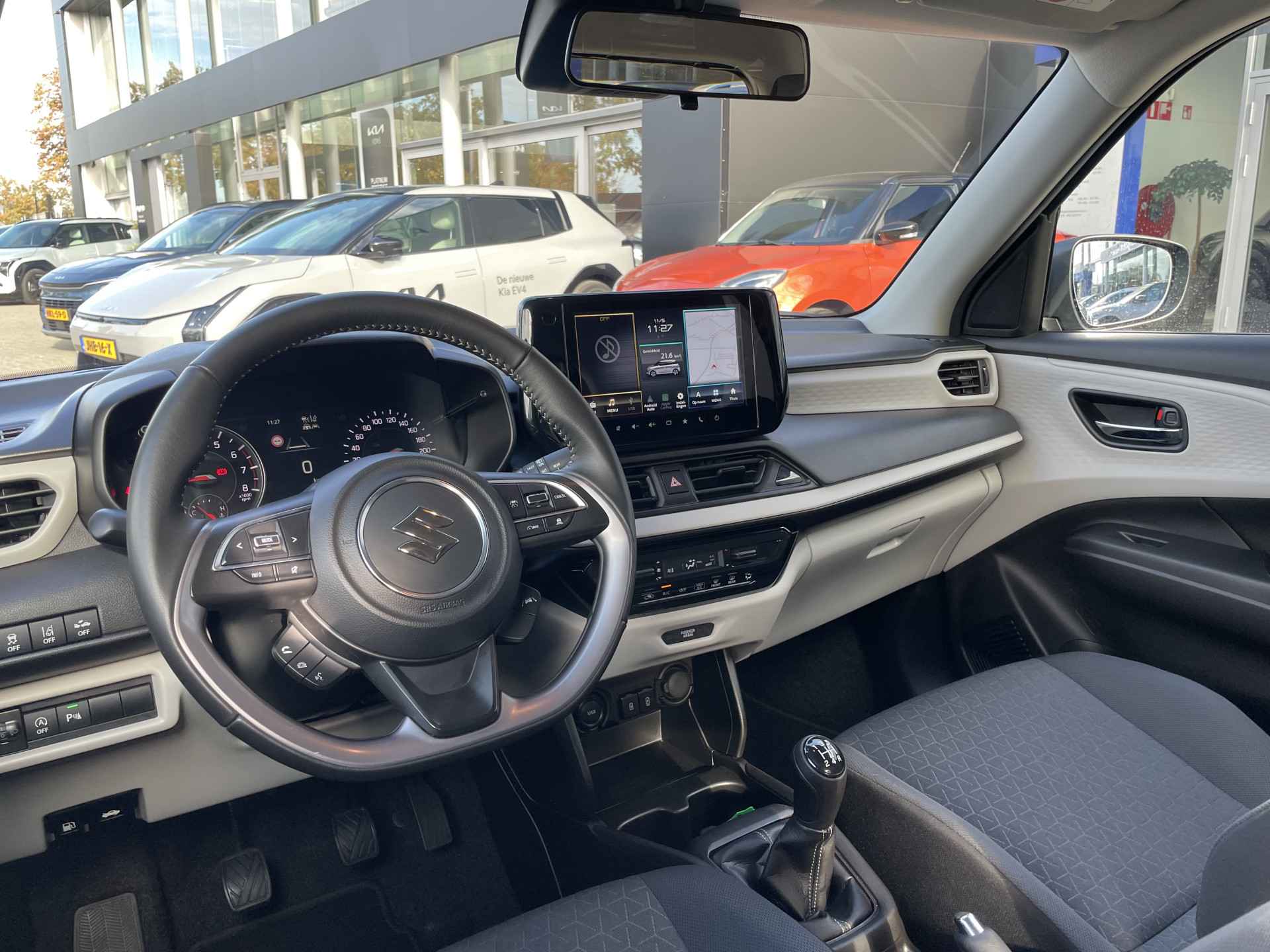 De achteruitrijcamera brengt precies in zicht wat zich achter u bevindt en toont een glashelder beeld op hoge resolutie. Een geluidssignaal waarschuwt hoeveel ruimte u nog heeft. Adaptive cruise control is een comfortabele en veilige optie. Het systeem reguleert de snelheid en houdt automatisch afstand tot uw voorligger. Uw smartphone wordt een dashboard, met alle functies in beeld. Dankzij Connected Services en de speciale app. Een optie die de veiligheid verhoogt, is de bediening vanaf het stuur van het audiosysteem (met DAB-radio!) en het full map navigatiesysteem. Een prettige optie is de keyless entry, die ervoor zorgt dat de Suzuki Swift automatisch van het slot gaat als u dichtbij komt. Met airconditioning, lederen stuur, bagage afdekhoes en boordcomputer is deze Suzuki helemaal compleet.