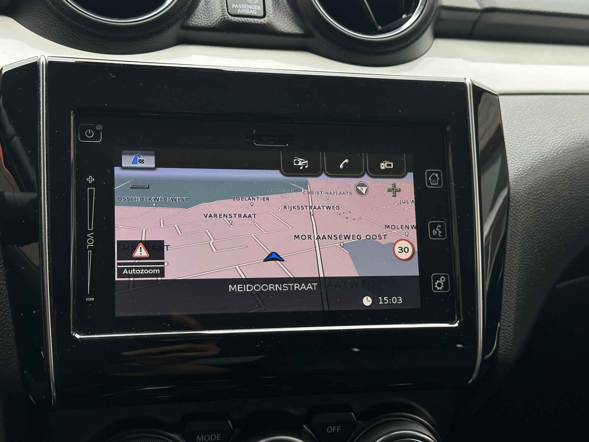 Altijd achter zicht, nooit meer nekkramp! De achteruitrijcamera maakt het supermakkelijk. Adaptive cruise control houdt de ingestelde snelheid vast en houdt automatisch afstand tot uw voorligger. Ook praktisch: deze auto is voorzien van een eigen full map navigatiesysteem. Het spreekt voor zich dat een auto als deze ook van electronic climate control is voorzien. Muziek aan, muziek uit? Het kan met een simpele vingerbeweging dankzij de audiobediening op het stuur! De Suzuki is standaard voorzien van: DAB ontvangst, lederen stuur, centrale deurvergrendeling met afstandsbediening, bagage afdekhoes en boordcomputer.