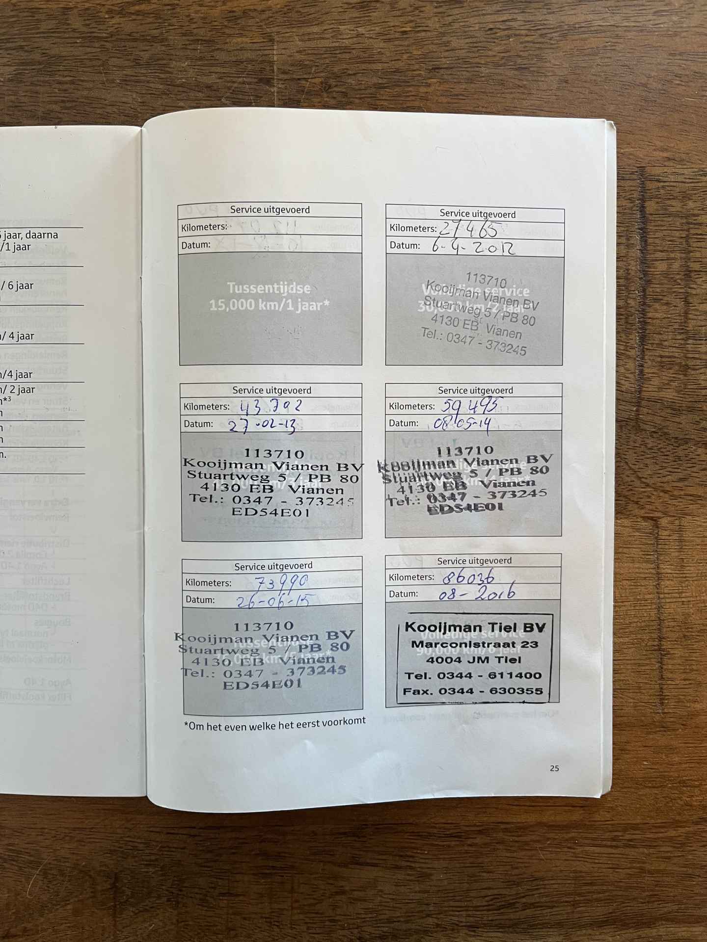 Laatste onderhoudsbeurt uitgevoerd