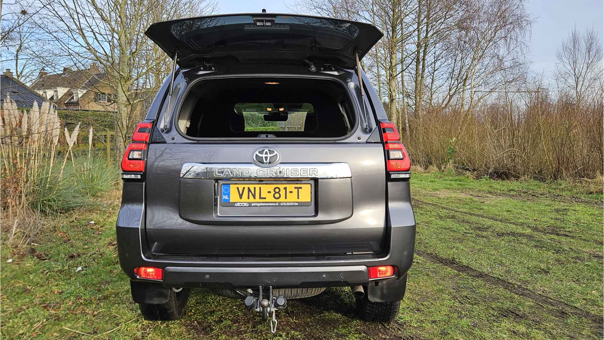 Ontspannen en zorgeloos autorijden, dat doet u met deze Toyota Land Cruiser. De krachtige dieselmotor van deze auto is gekoppeld aan een automatische transmissie. Terwijl u de bagage inlaadt via de elektrisch bedienbare achterklep, nemen uw passagiers al plaats in het lederen interieur. Mooi! Het comfort van de stoelverwarming geeft in koude dagen nét dat beetje extra. Luxepaardjes en levensgenieters worden enthousiast van de verwarmde achterbank. Bij de rijke uitrusting horen ook 19 inch lichtmetalen velgen, LED koplampen, trailer assistent, elektrisch inklapbare buitenspiegels, donker getint glas achter en in delen neerklapbare achterbank.