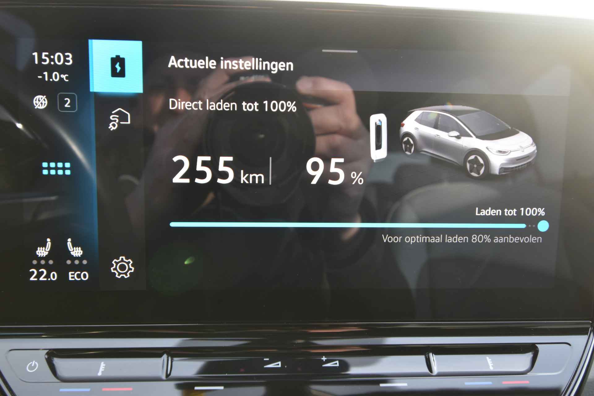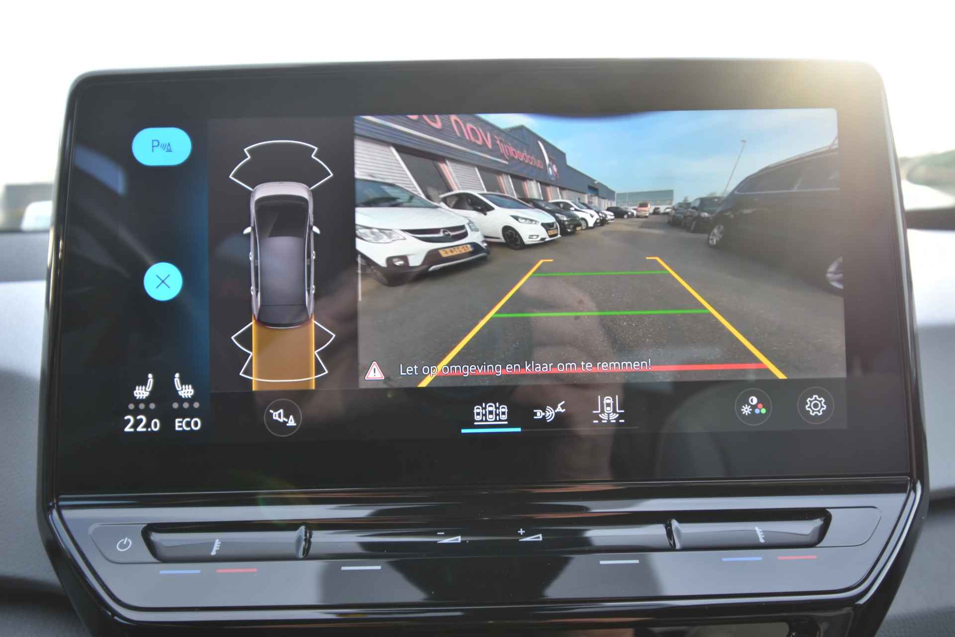 Zoals u mag verwachten van deze Volkswagen ID.3 is hij uitgerust met een reeks aan actieve veiligheidssystemen. Belangrijk voor uw veiligheid en die van uw passagiers is de verkeersbord-detectie in deze auto. Het Lane-keeping systeem registreert permanent of u binnen de lijnen van de rijstrook blijft; dwaalt u onbedoeld af, dan waarschuwt het systeem en corrigeert de koers. Het forward collision warning-systeem waarschuwt indien een botsing dreigt met een voorliggend of tegemoetkomend voertuig. U bent mede dankzij hill hold functie, vermoeidheidsherkenning, autonoom remsysteem en bandenspanningcontrolesysteem steeds veilig onderweg.
