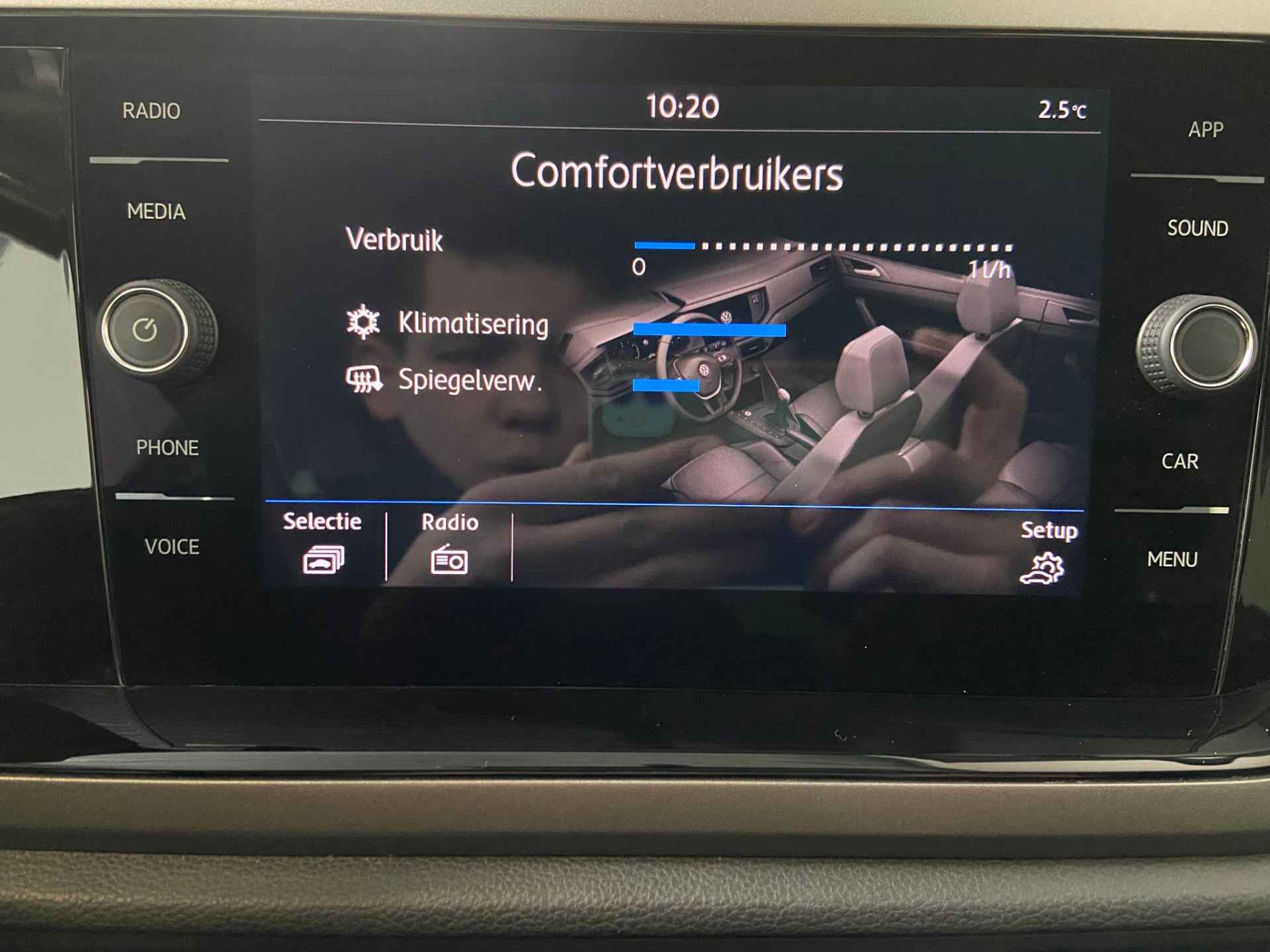 Adaptive cruise control houdt de ingestelde snelheid vast en houdt afstand tot het voertuig voor u. De sensoren van de achteropkomend verkeer waarschuwing registreren wat er gebeurt in de dode hoeken en achter u. U krijgt meteen een waarschuwing als u een achterligger over het hoofd ziet. Met de climate control selecteert u de gewenste temperatuur. Het systeem doet de rest. Gemak en veiligheid gaan prachtig samen. Bijvoorbeeld door de audiobediening op het stuur. Deze Volkswagen is voorzien van centrale deurvergrendeling met afstandsbediening, boordcomputer en lederen versnellingspook.