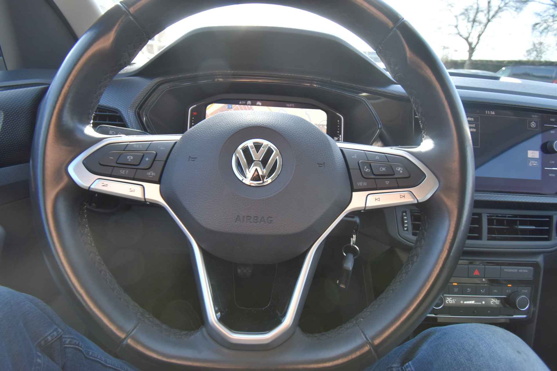 Zoals u mag verwachten van deze Volkswagen T-Cross is hij uitgerust met een reeks aan actieve veiligheidssystemen. Forward collision warning is een automatisch waarschuwingssysteem dat direct in werking treedt bij gevaar voor een kop-staartbotsing. De veiligheid van deze auto wordt verder verhoogd door dodehoekdetectie, hill hold functie, autonoom remsysteem en bandenspanningcontrolesysteem.