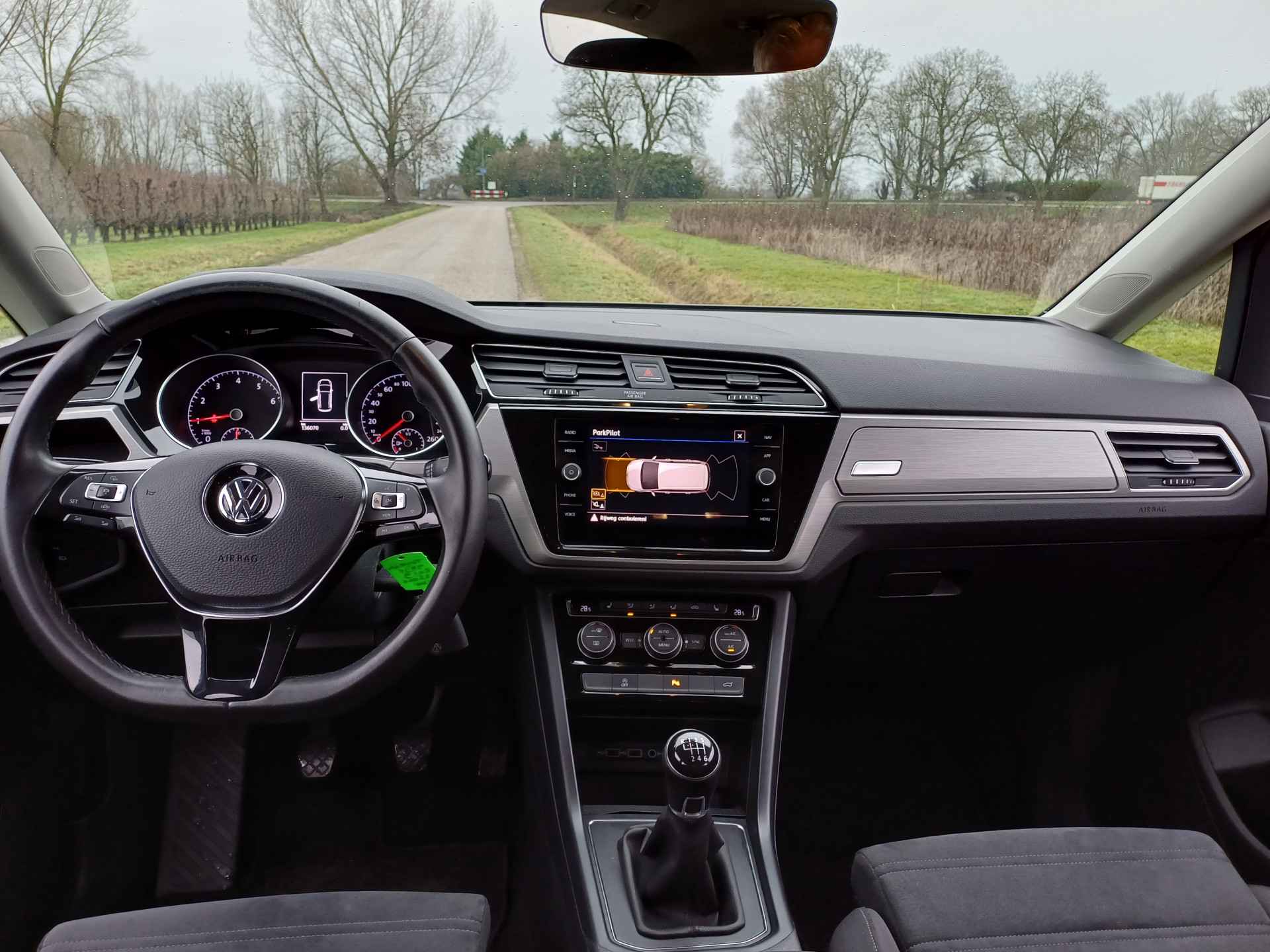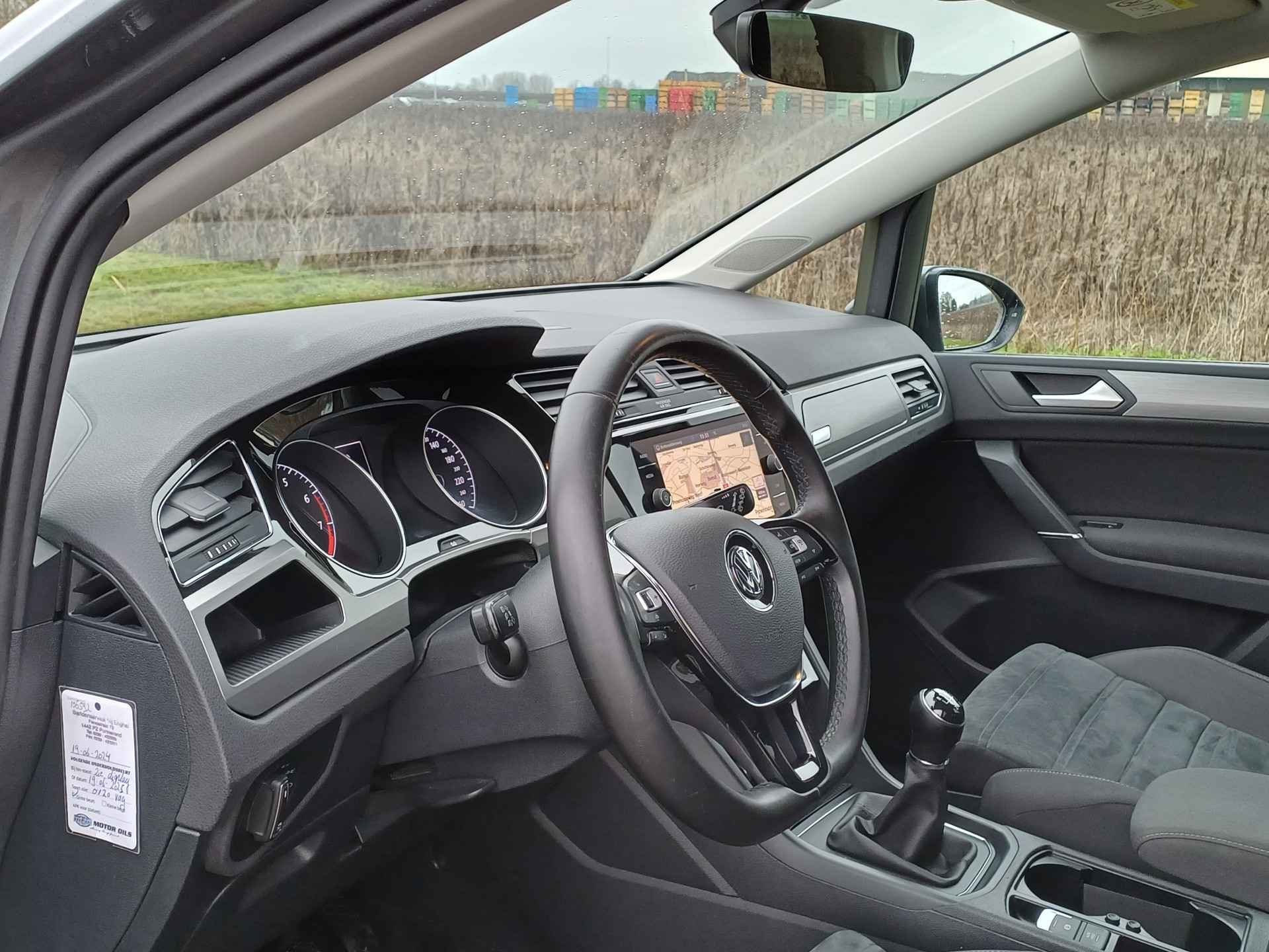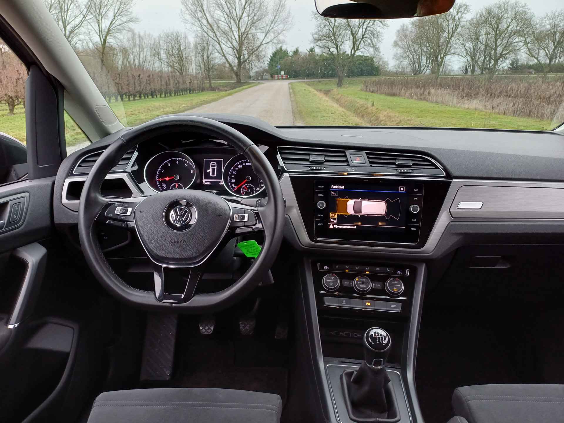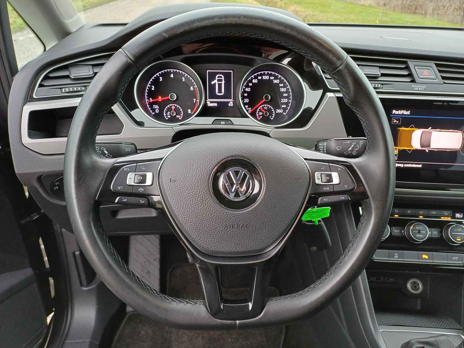 'Boem is ho'? Niet met deze achteruitrijcamera. U ziet achter net zo goed als voor en krijgt een duidelijk geluidssignaal! Adaptive cruise control houdt de ingestelde snelheid vast en houdt afstand tot het voertuig voor u. De bediening van het audio-installatiesysteem en het full map navigatiesysteem gebeurt met knoppen op het stuur en als u wilt zelfs met uw stem. De audio is overigens voorzien van DAB-radio voor een altijd heldere ontvangst. Omdat u nu eenmaal niet overal ogen heeft, is deze Volkswagen Touran voorzien van een achteropkomend verkeer waarschuwing die registreert wanneer de afstand tot uw achterligger te krap is. De automatische airconditioning zorgt onder alle omstandigheden voor een prettige temperatuur. En dan is deze auto ook nog eens voorzien van regensensor, lederen stuur, isofix-aansluiting, bagage afdekhoes, boordcomputer en lederen versnellingspook.