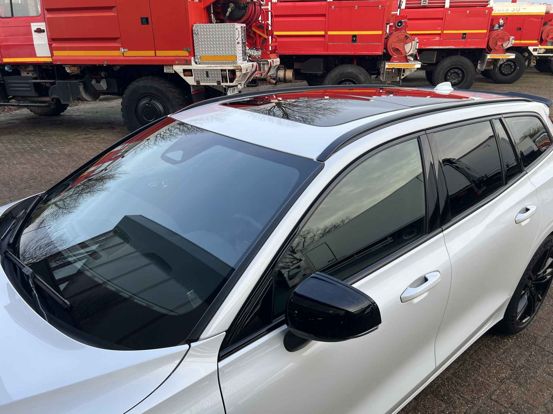 Prachtige sportieve stationwagen uitgevoerd in de premium kleur Chrystalwhite met zwarte accenten.