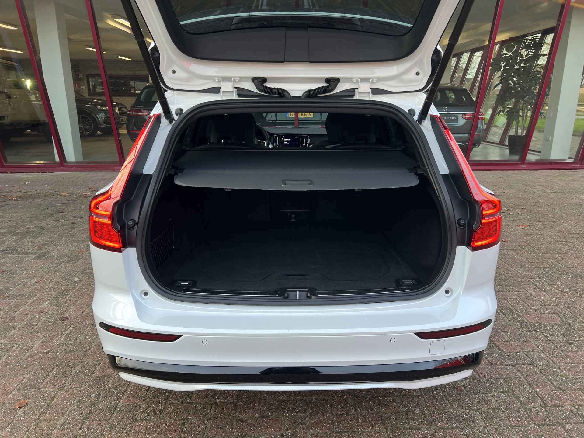 Het interieur is uitgevoerd in volledig zwart met aluminium accenten, lederen sportstoelen en voorzien van alle denkbare opties, comfort- en rijhulp- en veiligheidssystemen. Onder meer Apple Carplay/Android Auto, premium Harman Kardon audiosysteem, Google infotainmentsysteem, adaptieve verlichting, electrisch glazen panoramadak, extra getint glas achter, electrisch wegklapbare trekhaak, etc.
