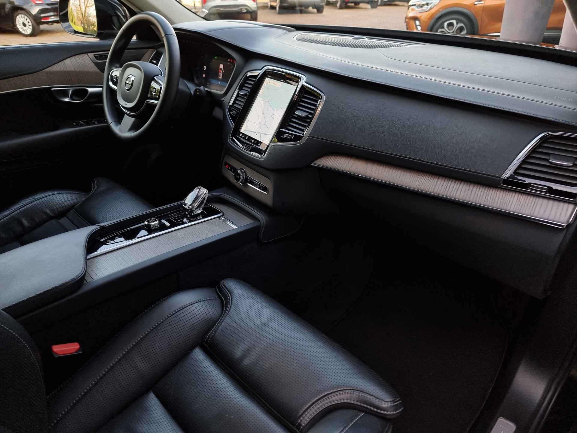 "Zweedse veiligheid. Zweedse innovatie. Zweedse duurzaamheid. 'Volvo for life'. Een elektromotor of verbrandingsmotor? Kiezen hoeft niet, want deze auto is hybride. Slim, zuinig en voordelig! Een lederen interieur staat al decennia voor stijl en klasse. Ook bij deze Volvo XC90. Dankzij de elektrische stoelbediening is het gemakkelijk om de optimale zitpositie te vinden. Voel die ruimte eens! Lekker veel licht door het elektrisch bediende glazen panoramadak. De elektrische achterklep opent met een druk op de knop, zodat u gemakkelijk toegang heeft tot de bagageruimte. Deze Volvo XC90 heeft eigenlijk alles, zelfs een verwarmde achterbank. Extra passagiers? Geen enkel punt. In één simpele handeling creëert u een derde zitrij. Tot de uitrusting behoren ook 20 inch lichtmetalen velgen, Full LED koplampen, geluidsisolerende ramen, in delen neerklapbare achterbank en verstelbare lendensteunen.
